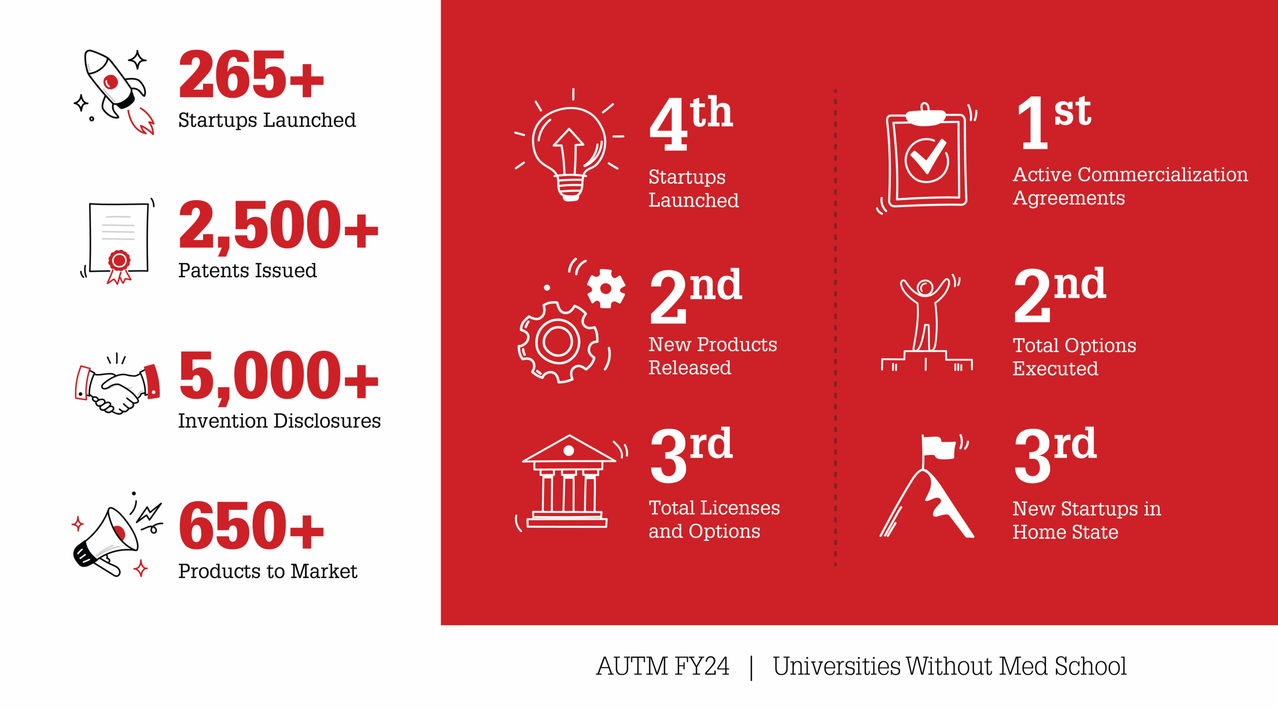Research commercialization metrics highlight the impact of university innovations as they move from the lab to the marketplace. By tracking invention disclosures, patents, licenses, and startup creation, these measures reflect how a university transforms research discoveries into real-world solutions that can drive both economic growth and societal benefit.